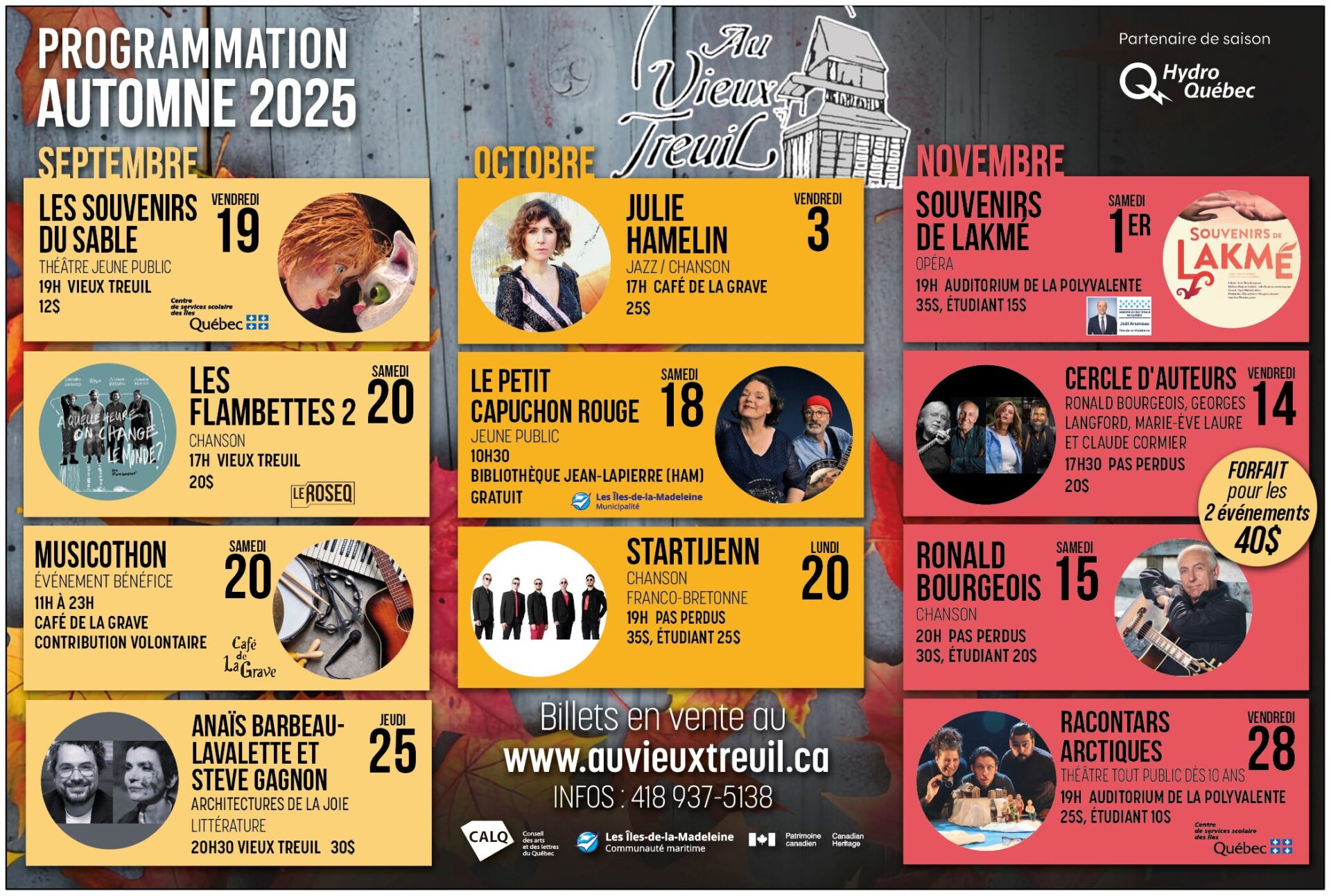 Voici notre belle programmation d’automne! Il y en a certainement pour tous les goûts!